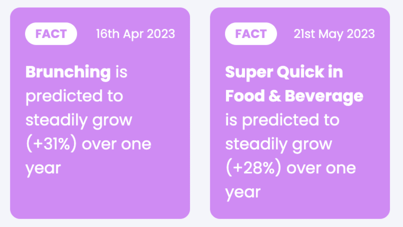 Young consumers want fast and nutritious meals for busy weeknights without sacrificing taste, our AI predicting that “Easy Meals” will grow +65% over one year. With jam-packed work lives to fuel and social lives to enjoy, they are choosing quick mid-week meals that align with their health-conscious values but that are bursting with flavor, giving rise to good quality ready-made meals, frozen foods and sheet pan meals.