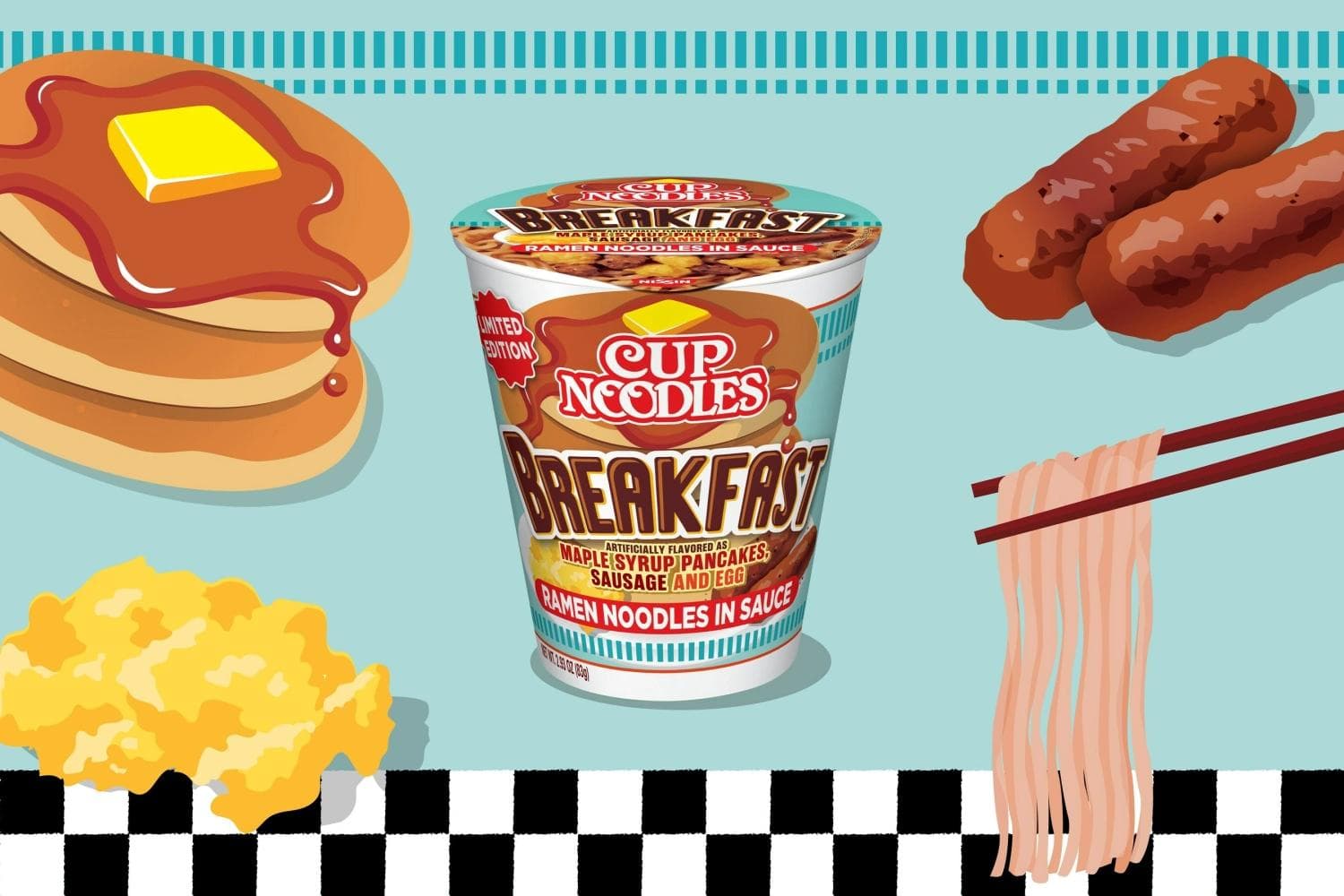 “Brinner”, the concept of having breakfast for dinner, is an encapsulation of this desire that also highlights the lack of categorization or context for food consumption. This year, Cup Noodles introduced instant breakfast ramen in Walmart featuring the classic curly wheat noodles, dehydrated egg and sausage pieces with a sauce infused with artificial essences of maple, butter, and pancakes to create a uniquely flavored meal that combines both sweet and savory breakfast flavors.