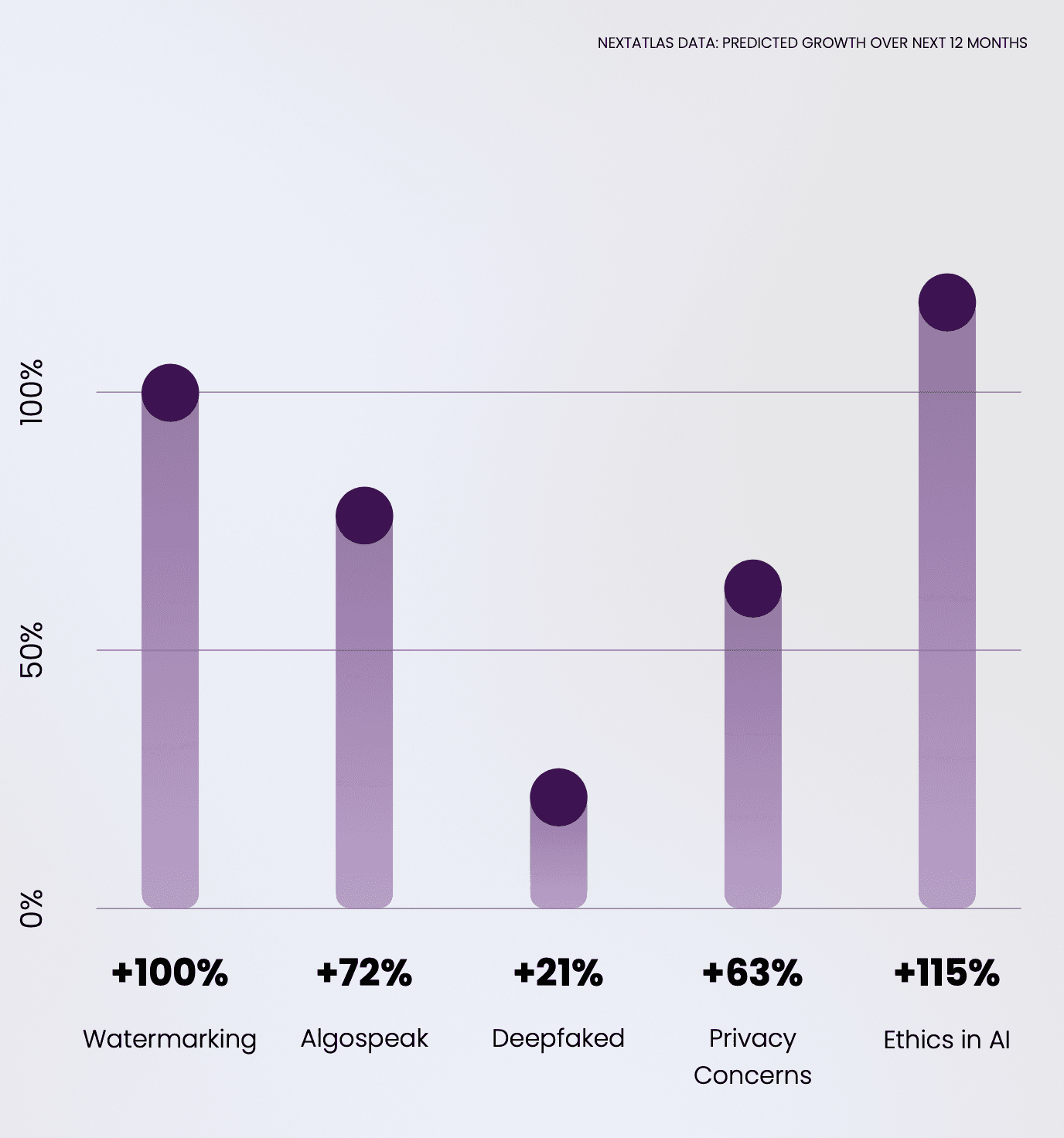 At Nextatlas, we diligently work each day to forecast upcoming trends by tracking over 1.6 million entities, creating a rich tapestry of words, concepts, and emerging phenomena that reflect global narratives. However, the year's end holds a distinct significance for us. It allows a comprehensive analysis of the previous 12 months, enabling us to provide robust market directions and insights into consumer attitudes for the upcoming year. In our annual report titled "Unveiling 2024," we have identified three pivotal directions of change encompassing product evolution, aesthetics, and the transformative role of humans within the realm of generative AI technology.