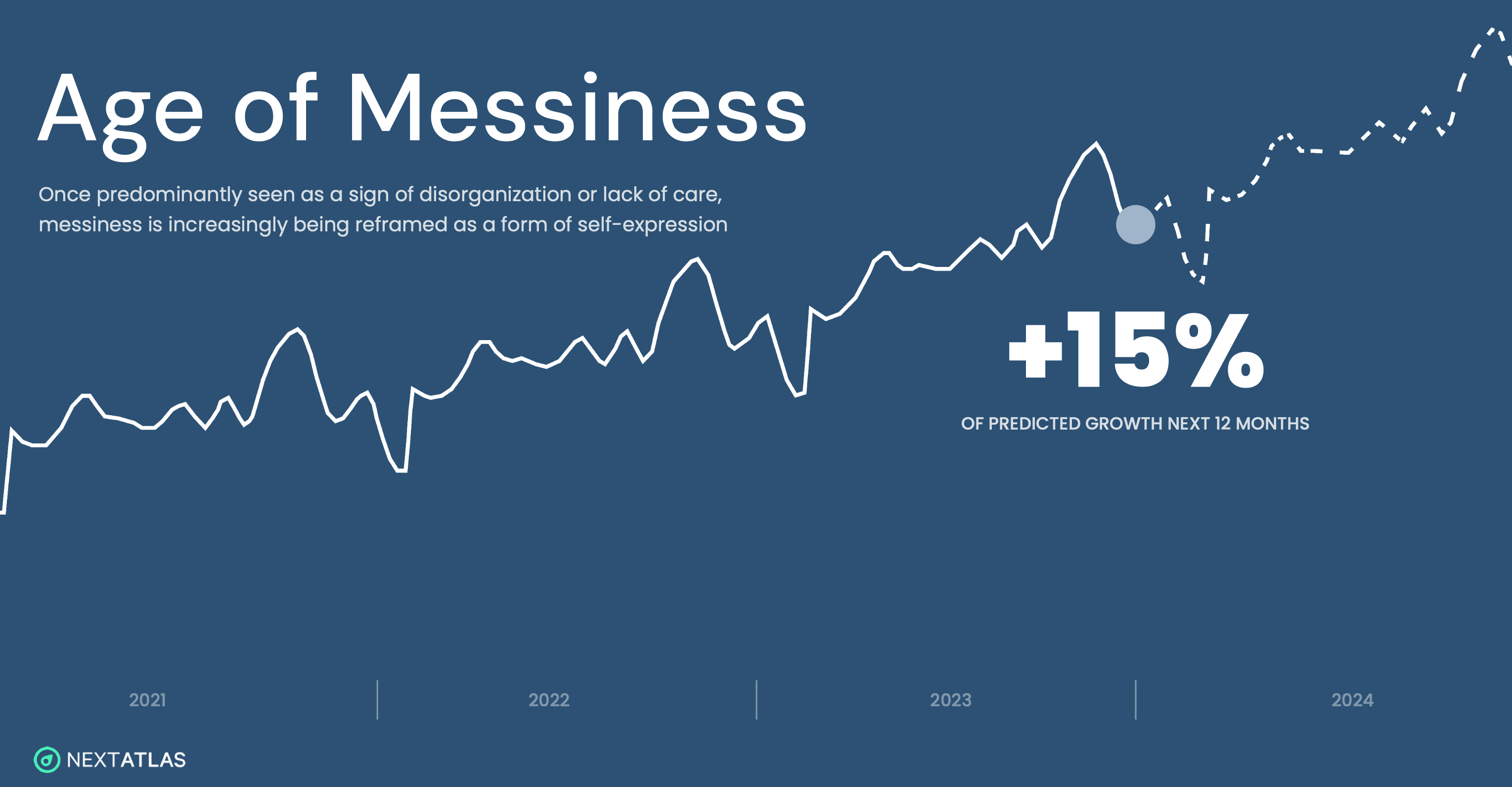 One of the key facets that will be crucial in the upcoming year is the concept we’ve termed “Mindful-Mess". Consumers are actively rebelling against the minimalist, meticulously organized, and curated lifestyle that has long dominated social media and design spheres. Rather, they are seeking identity and comfort in spaces and aesthetics that might appear disorganized or unconventional. This move towards embracing messiness and rawness is emblematic of a larger cultural revolution that questions traditional symbols of status and aspiration, presenting novel opportunities for brands and products to redefine their positioning.