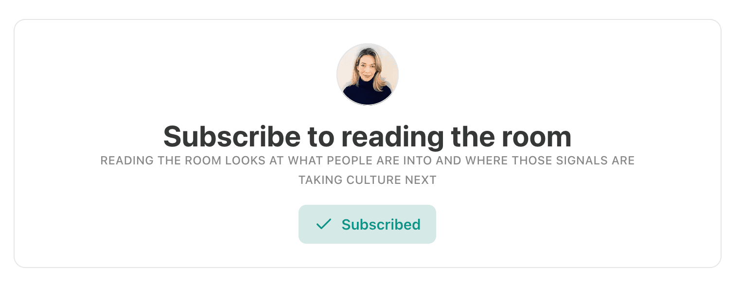 With reading the room, our Senior Insights Manager, Joanna, turns her analytical lens toward the subtle shifts that often precede mainstream change. The newsletter looks at what people are into and where those signals might be taking culture next.