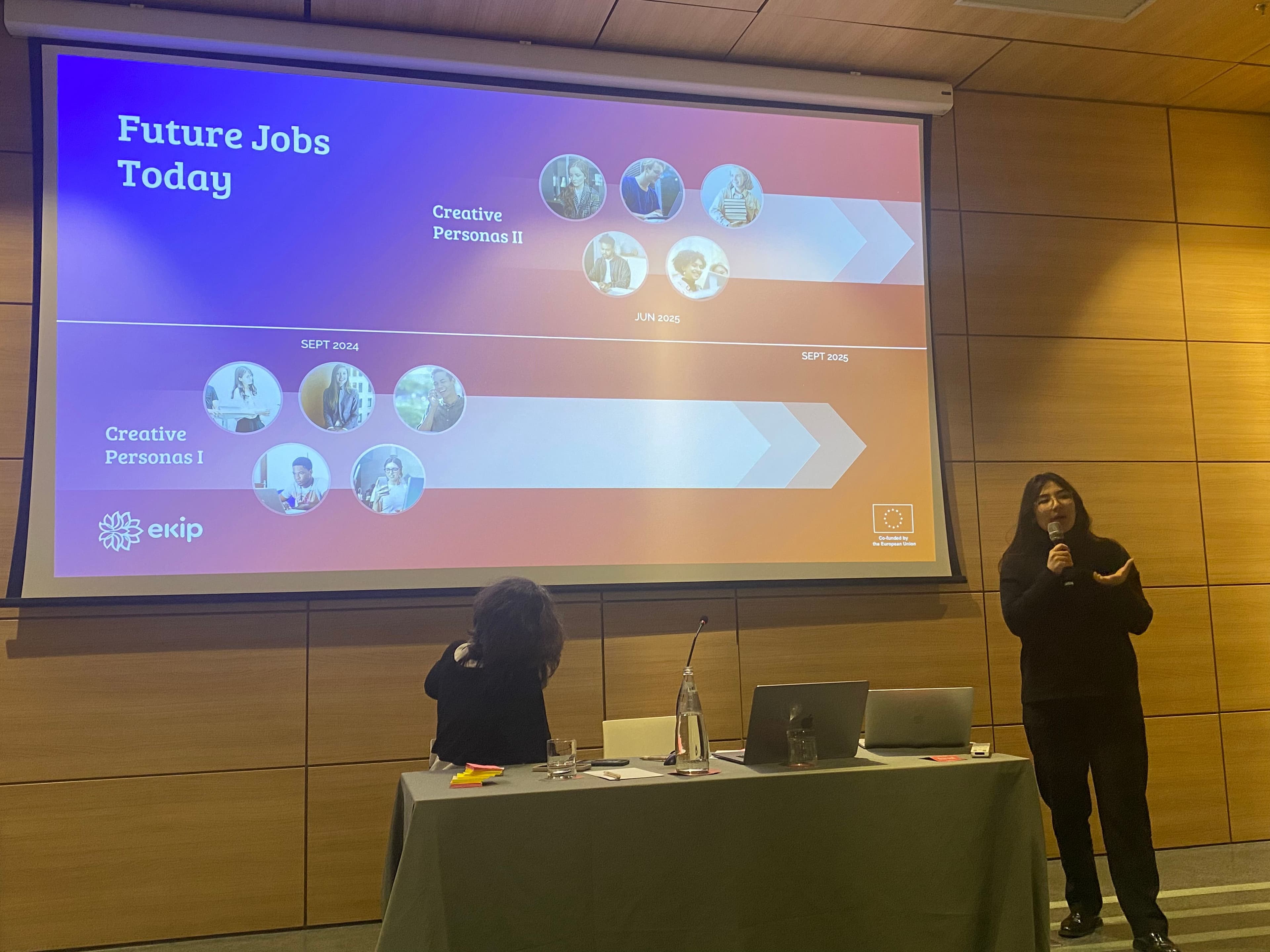 Our Head of Insights, Debora Bae, presenting our backcasting work at EKIP's seventh general assembly in Turin, October 2025