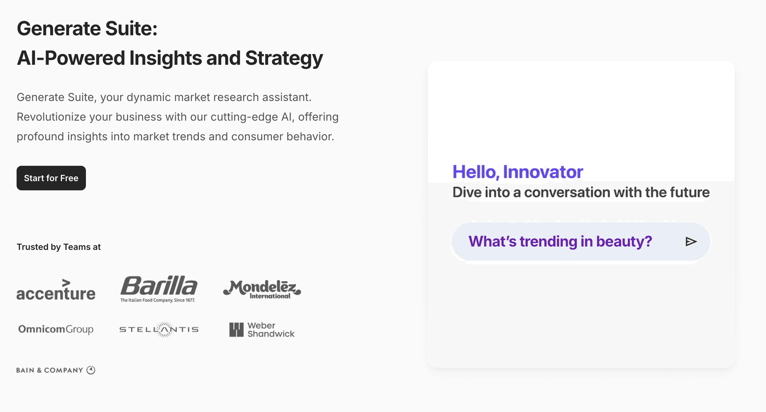 Thanks to our unique methodology, Generate Suite is a trusted tool for the research teams of Barilla, Weber Shandwick, and more.
