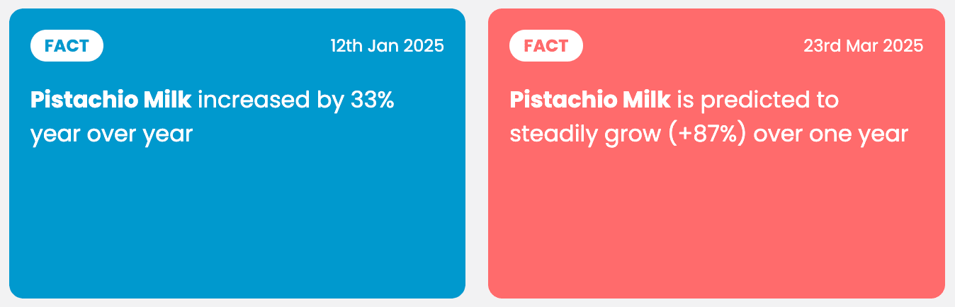 Facts from the Nextatlas platform on Pistachio Milk (screenshots taken in April 2025)