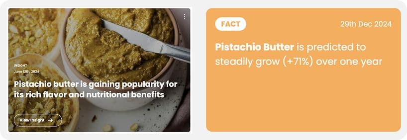 An insight and fact from the Nextatlas platform on Pistachio Butter (screenshots taken in April 2025)