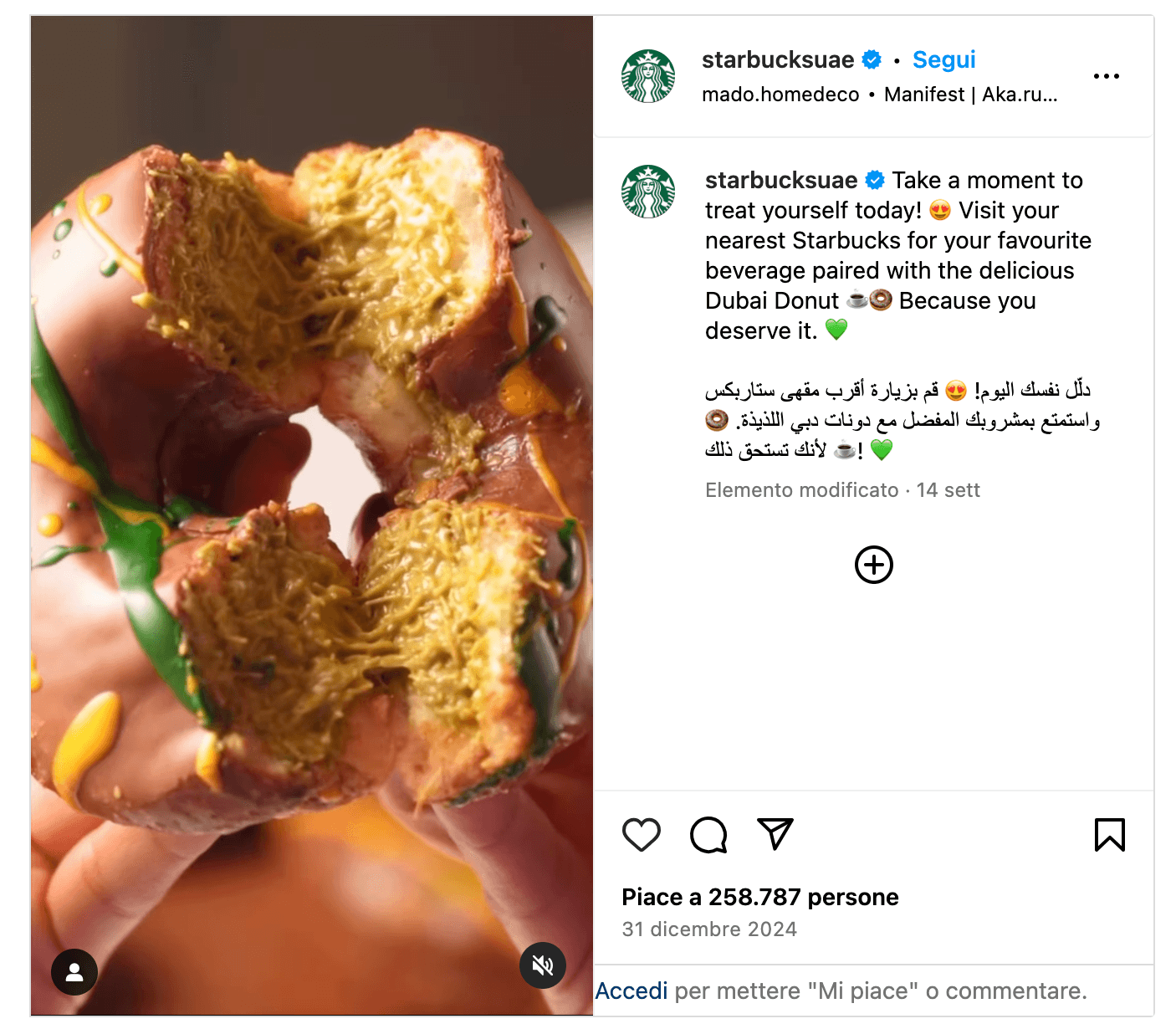 Brands wasted no time jumping on the pistachio-powered Dubai chocolate trend. Ghirardelli launched a Dubai Chocolate Sundae for one day only on the 8th March this year, Morrisons released Pistachio Kunafa Cake Bars, and Starbucks United Arab Emirates rolled out pistachio-inspired menu items.