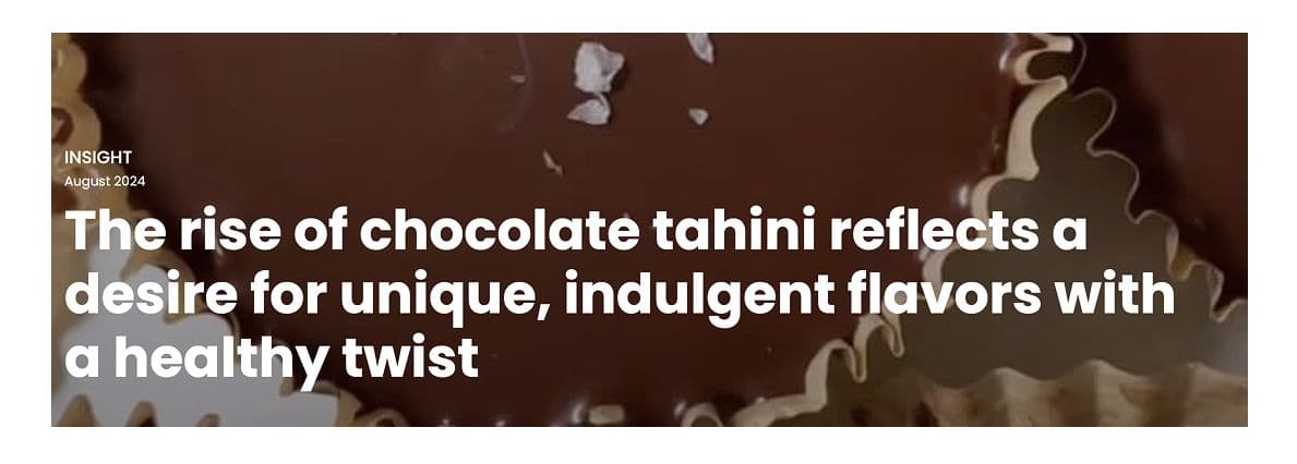 This layered flavor story was already coming together in the data before the Dubai chocolate bar hit viral status in September 2024. For example, in August 2024, we highlighted the rise of chocolate tahini—a combination reflecting consumer desires for unique, indulgent flavors with a healthy twist. This mirrors the exact appeal of Dubai chocolate: a blend of rich, culturally Middle Eastern ingredients with an elevated, modern luxury feel. The bar’s success wasn’t just about sweetness—it was about cultural richness, extravagance, nostalgia for simple flavors, and perceived wellness, all themes we’d already seen surfacing across different ingredients.