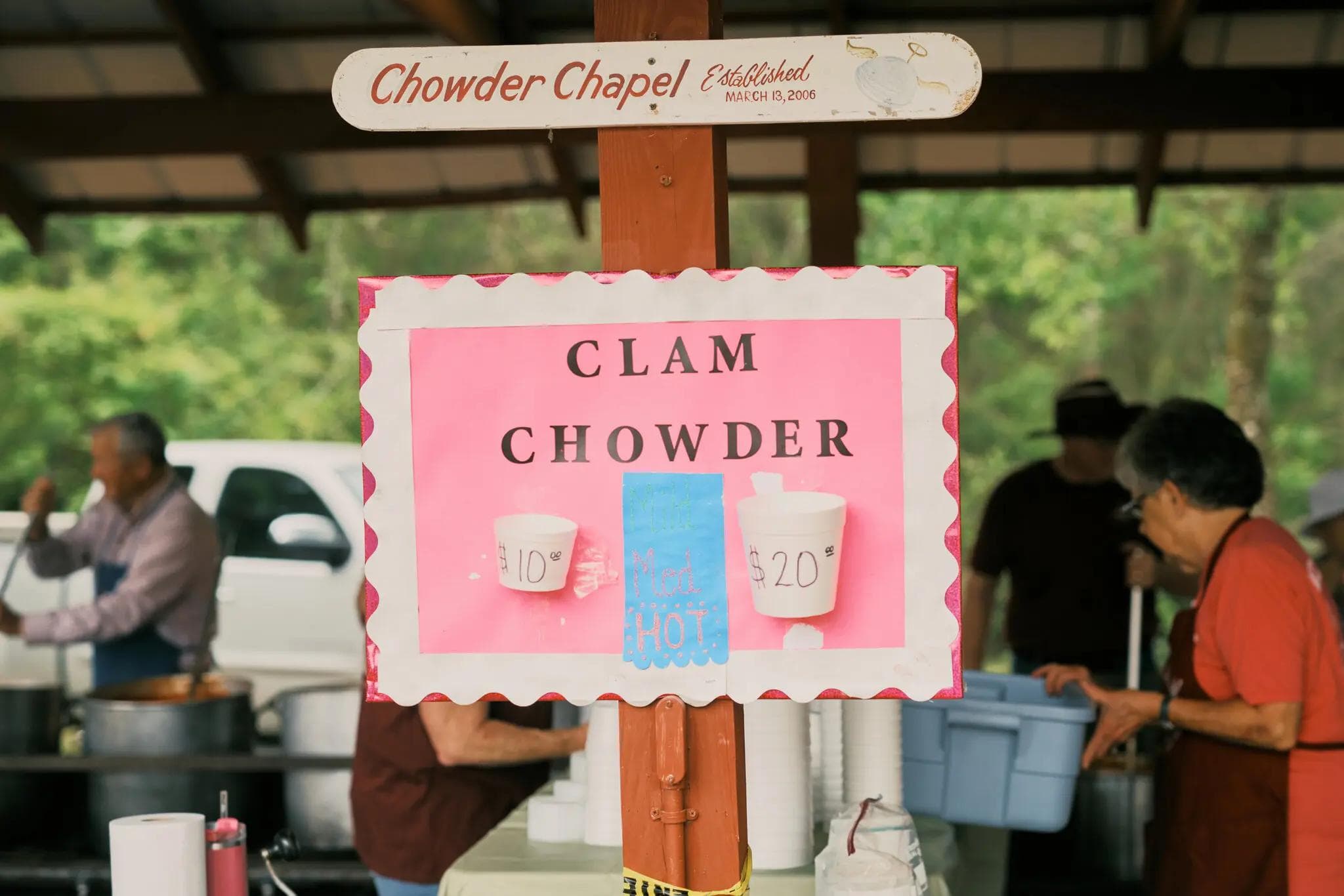 Mary Ellen Masters in the right foreground of the photo at her family's clam chowder stall (credits: The New York Times)