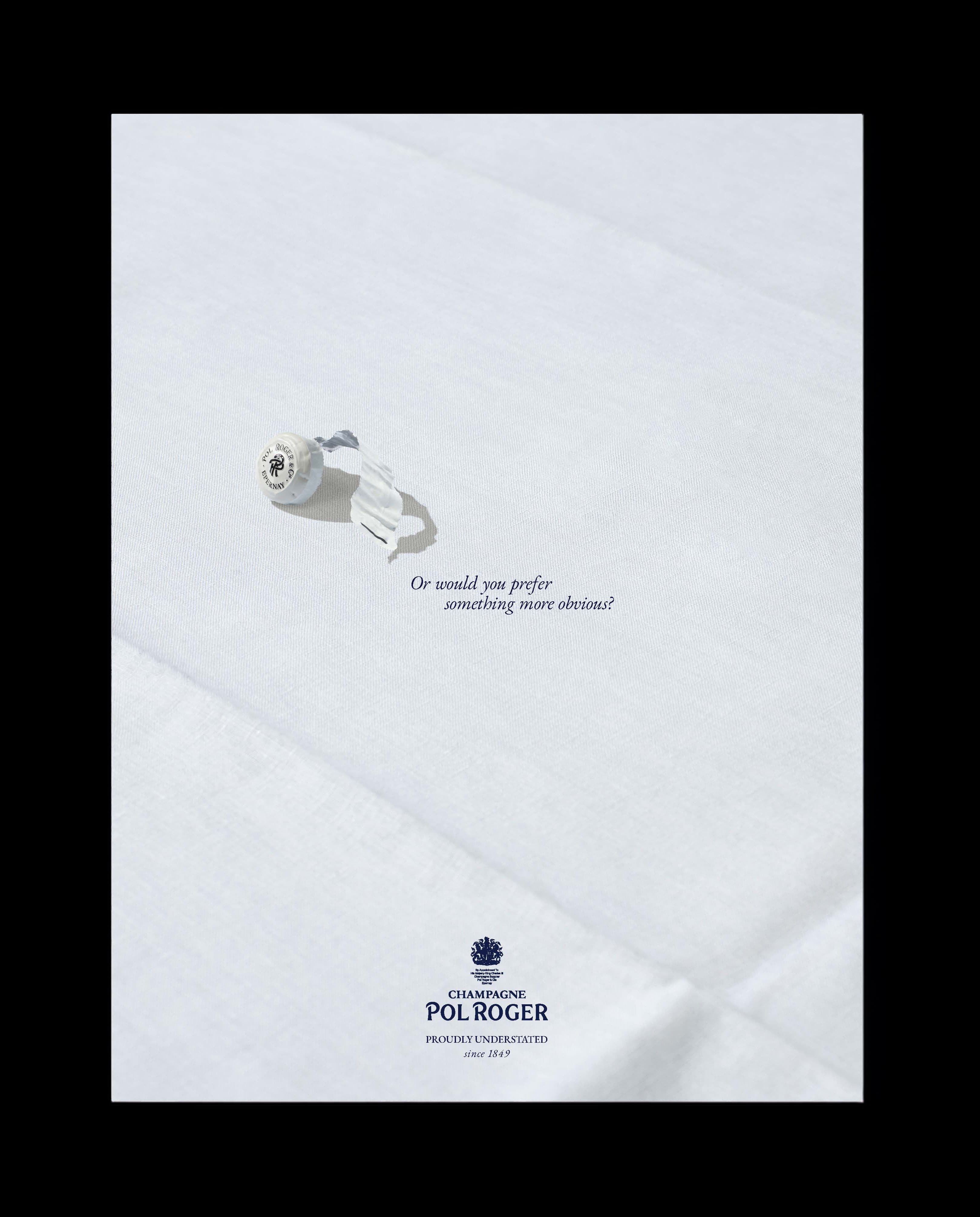 Pol Roger invites the audience to recognize the sophistication of their champagne through what’s missing (credits: LBBOnline)