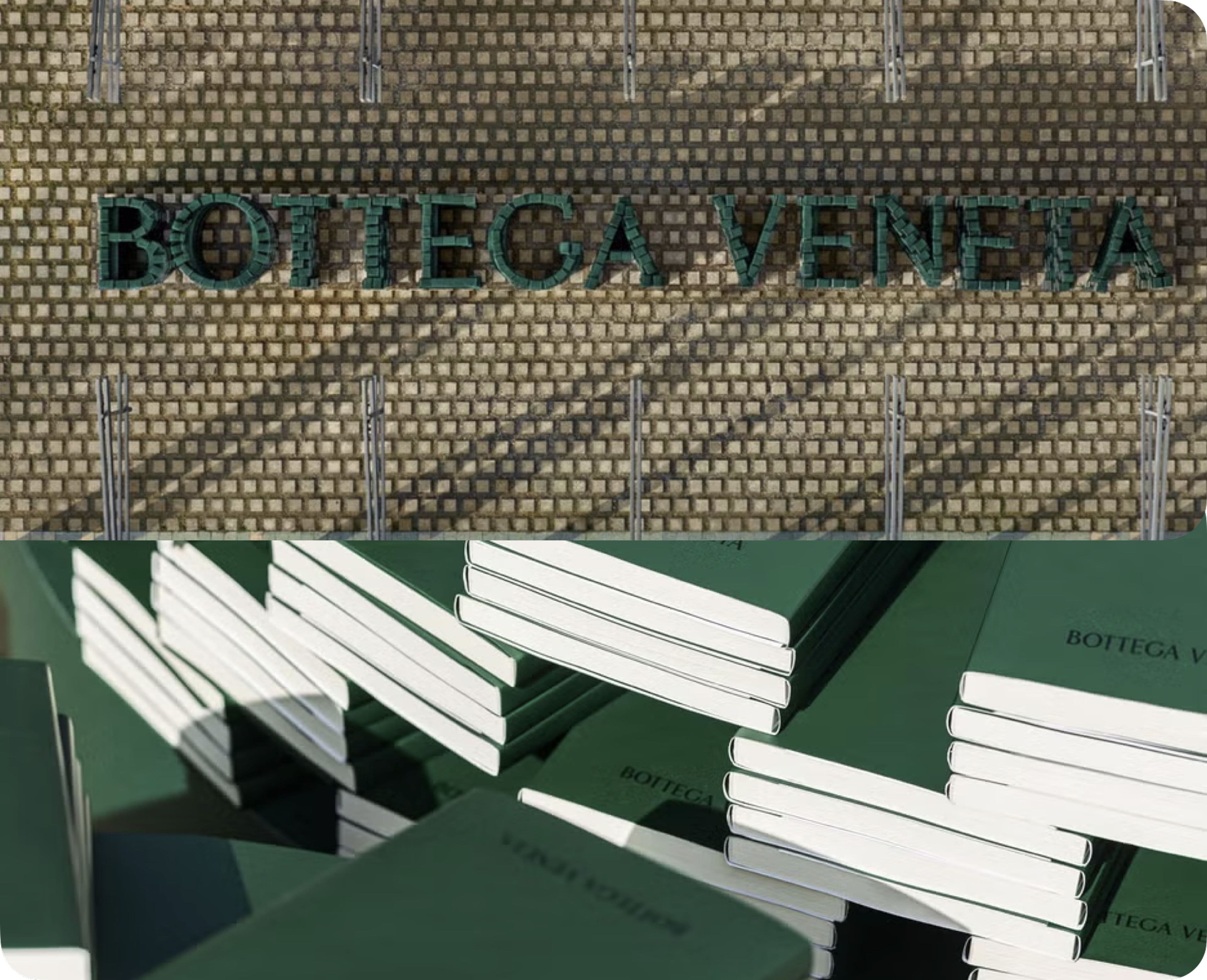 Bottega Veneta’s logo was a fleeting, participatory installation at Shanghai’s Rowing Club, where 20,000 copies of a poem by Yu Xiuhua gradually erased the brand mark as visitors took them away (credits: Le Pub)