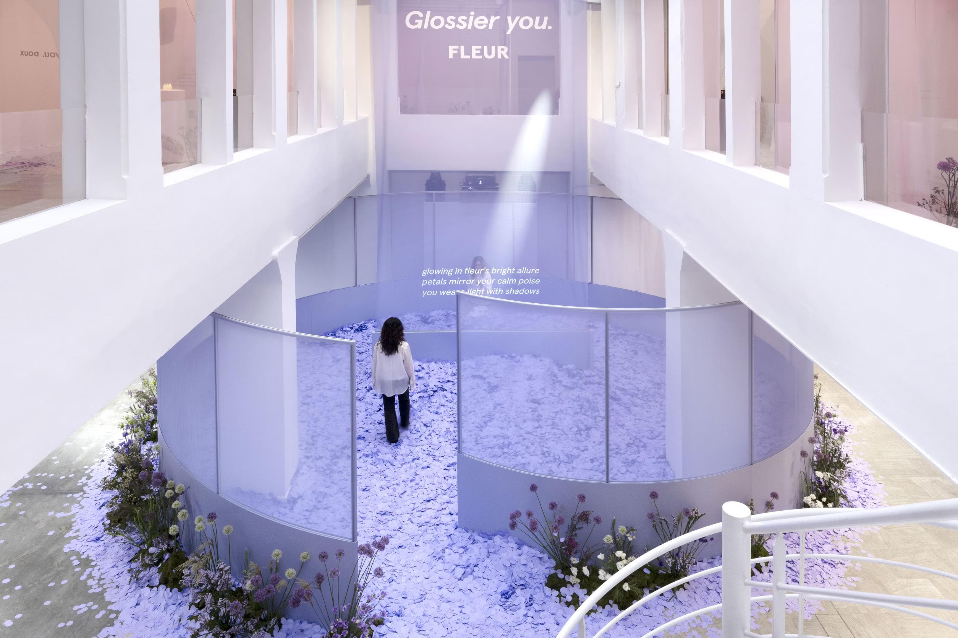 Glossier launched its Fleur fragrance with an AI-powered pavilion that generates a unique, personalised poem for each visitor the moment they lift the bottle, using hidden sensors and computer vision to translate their presence into a poetic response without visible screens or interfaces (credits: Random)