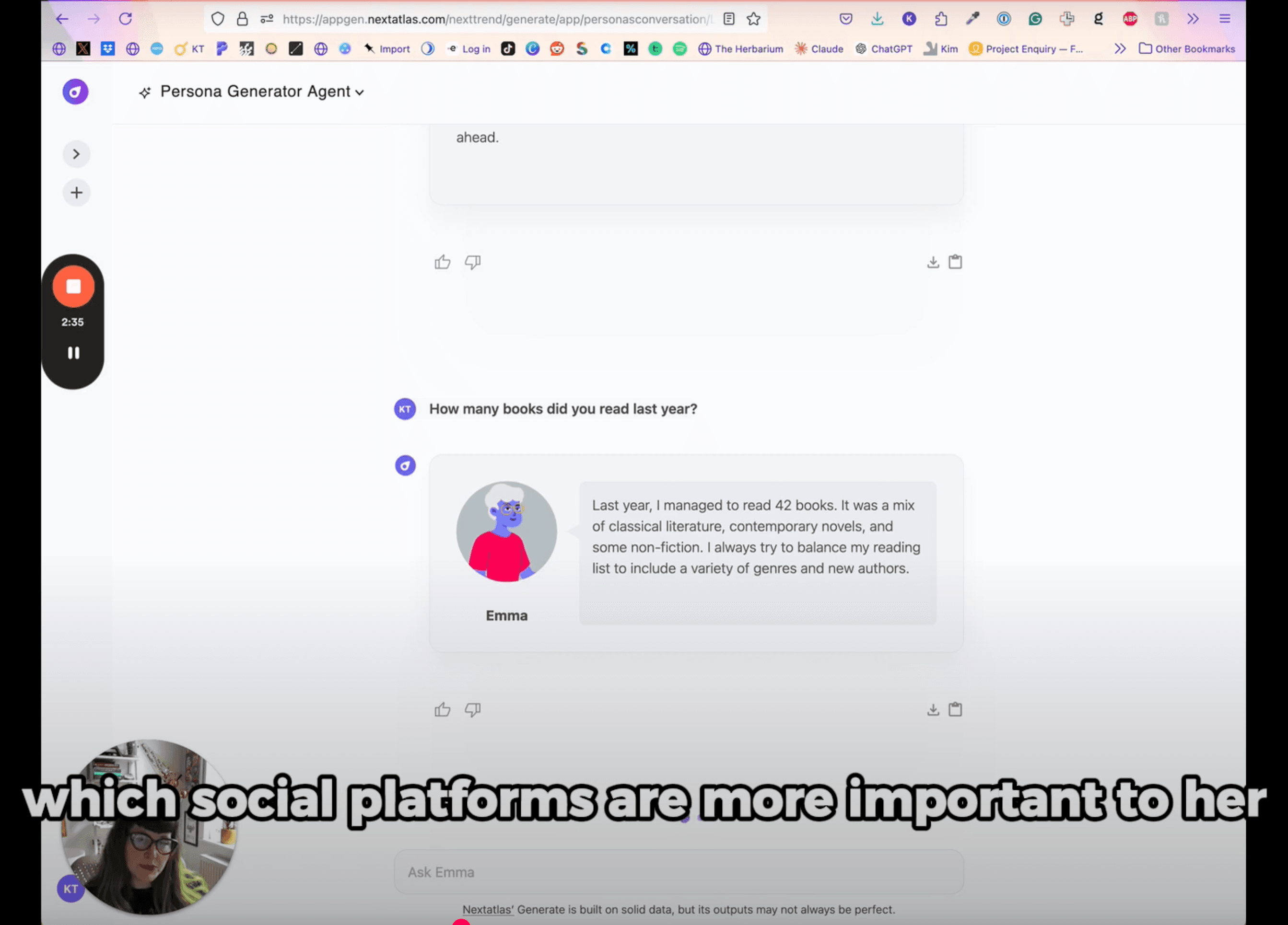 Cultural strategist and friend of Nextatlas, Kim Townend, kindly conducted a live tutorial of the Persona Agent and how she used it to investigate consumers interested in books, reading, and BookTok.