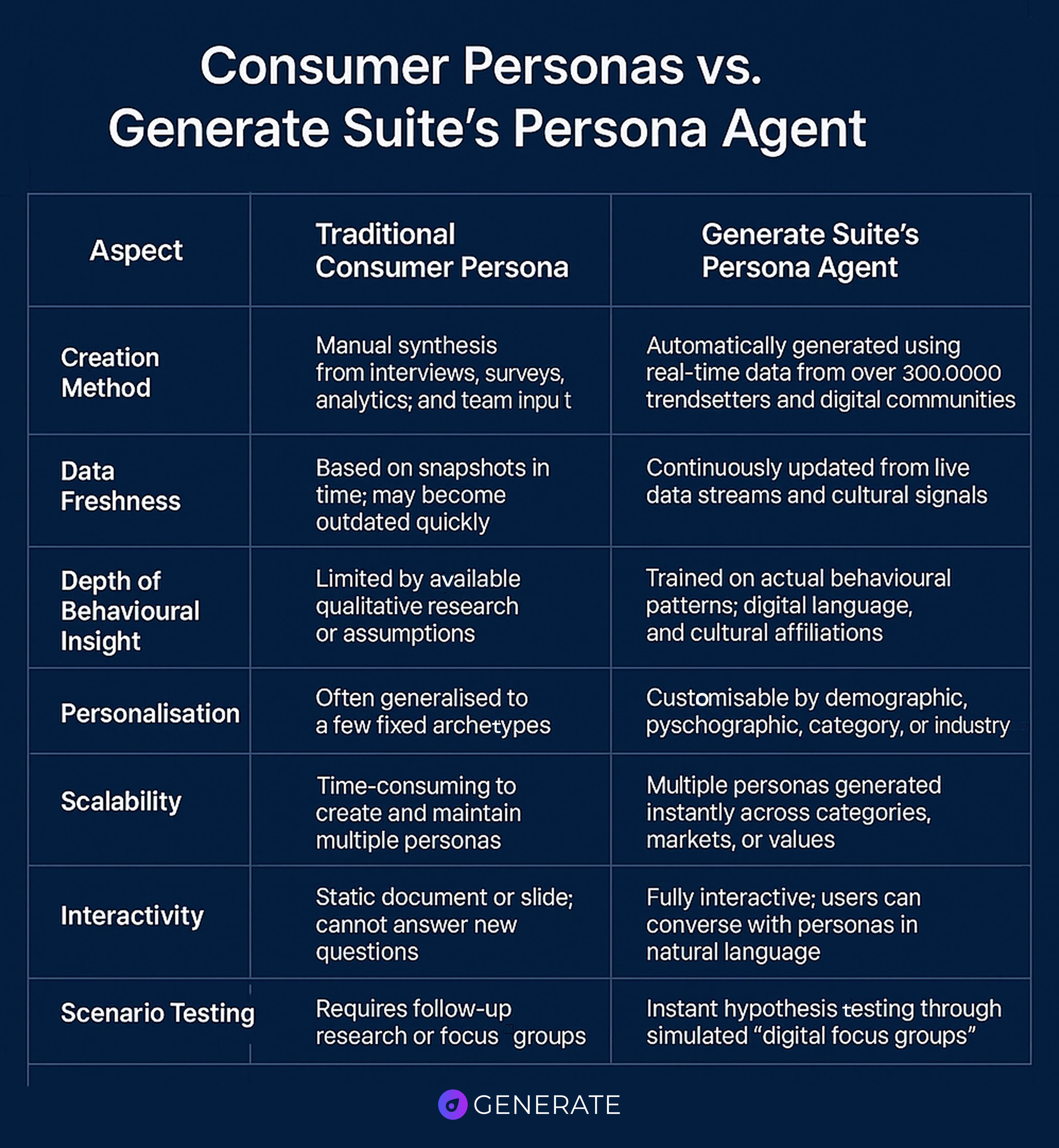 How Generate Suite's Persona Agent is better than basic consumer personas in more traditional market research