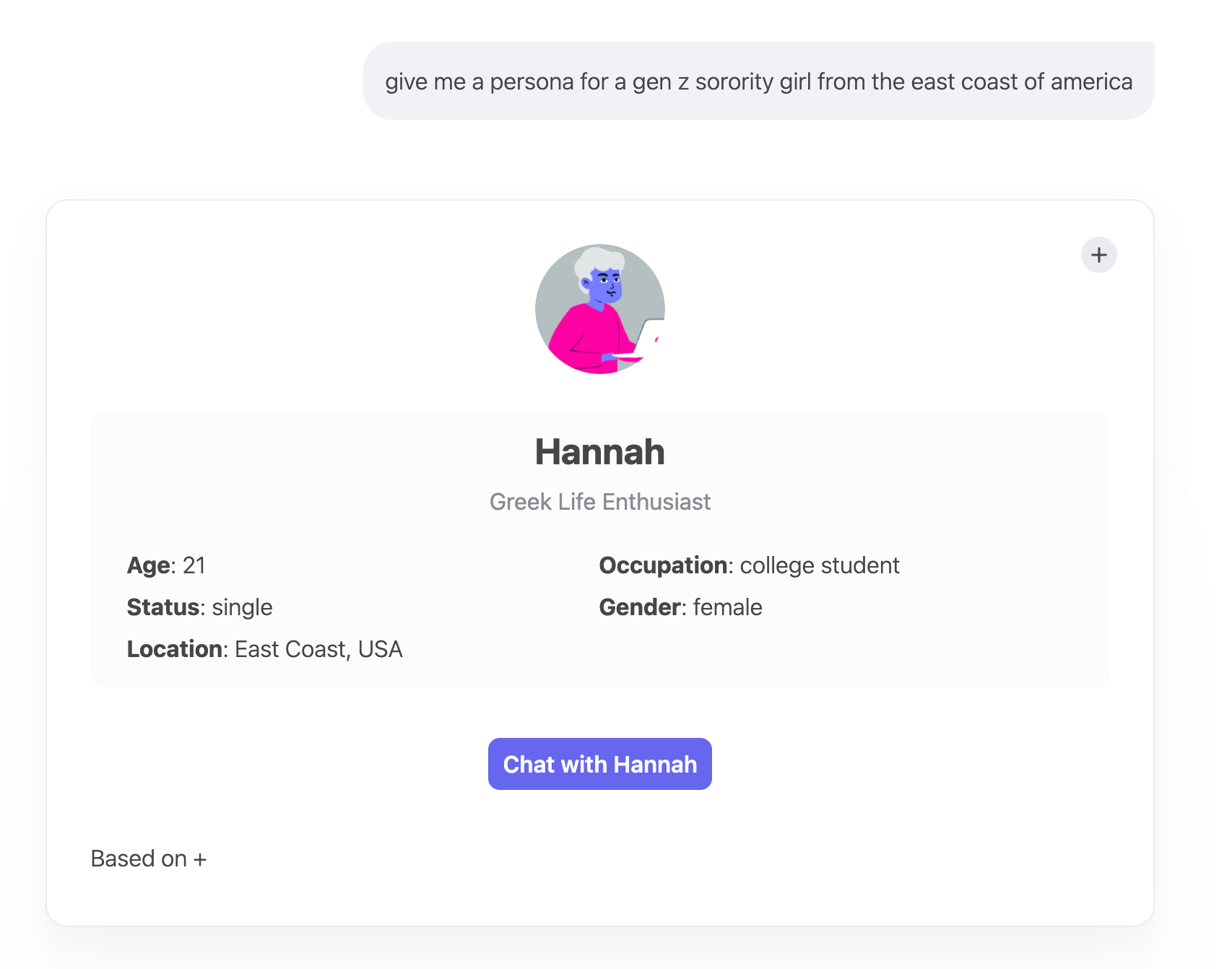 All of this happens in a natural-language interface. You don’t need to write prompts like a data scientist. You just ask questions the way you normally would: “Generate a Millennial mom who lives in the UK” or “Create a persona for a Gen Z male gamer who also loves sports”