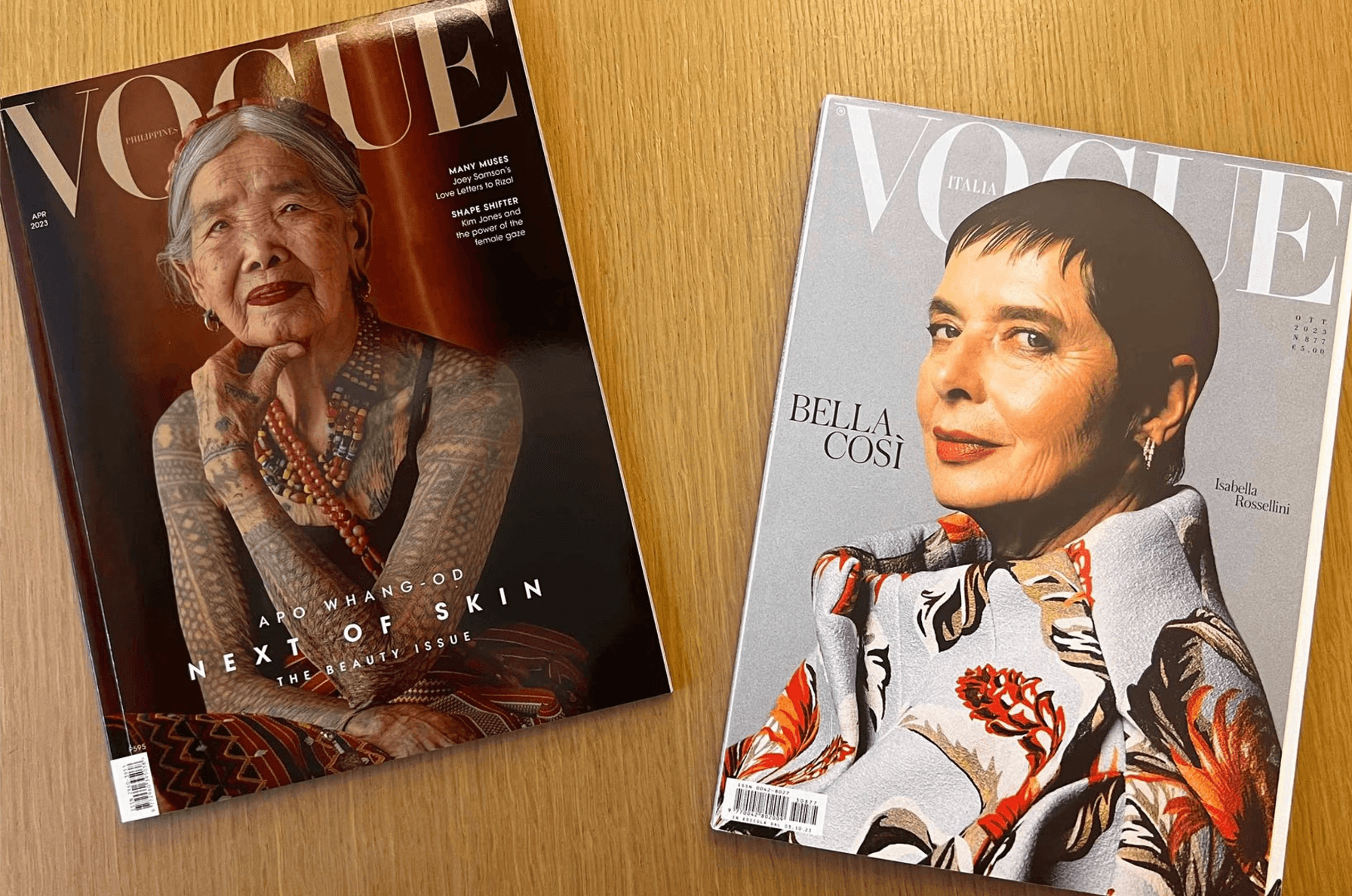 The cover of Vogue Philippines from April 2023 and the cover of Vogue Italia from October 2023 (credits: the Met Museum)