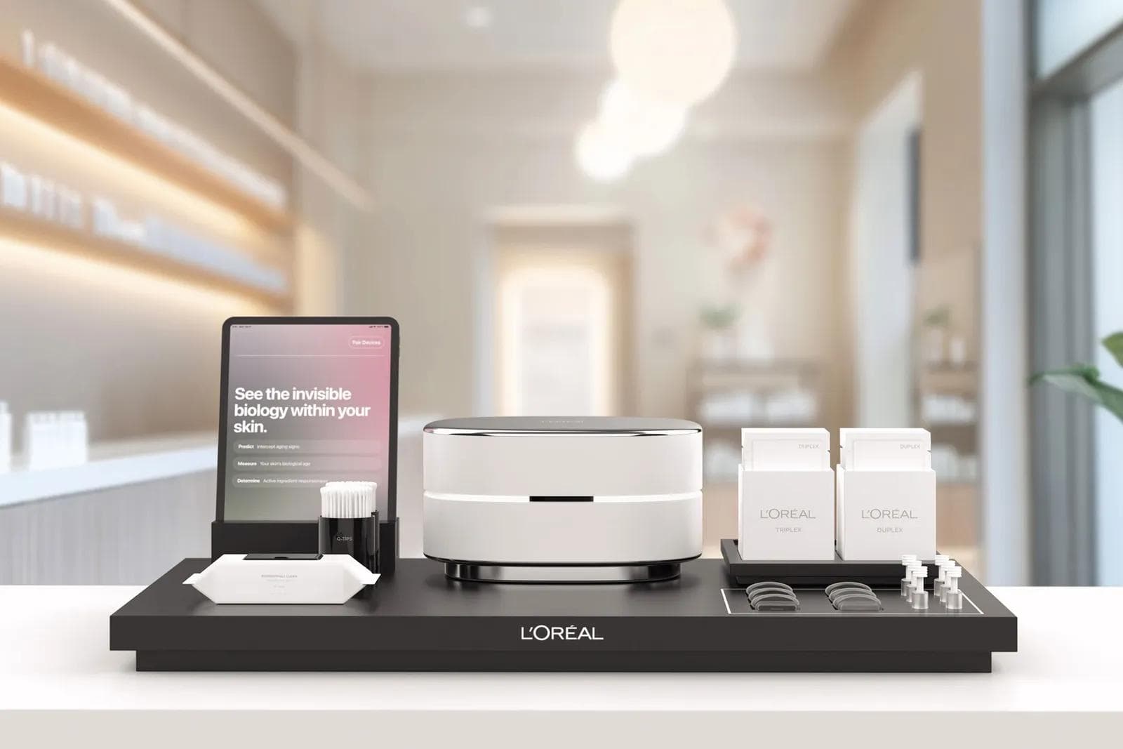 The Cell Bioprint tool on the counter, their new tool that can analyse a customer’s skin cells to predict their responsiveness to ingredients like retinol and detect potential issues before they emerge (credits: L’Oréal Group)